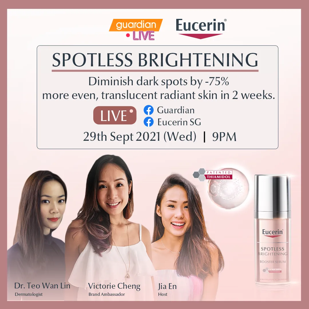 Singapore Dermatologist Dr. Teo Wan Lin of TWL Specialist Skin & Laser Centre, explains the common causes of hyperpigmentation in the Eucerin x Guardian Facebook Live. She shares the scientific research on dermocosmetic ingredient Thiamidol, which Eucerin holds the patent for and incorporates in their Spotless Brightening Booster Serum. This is clinically proven to reduce dark…